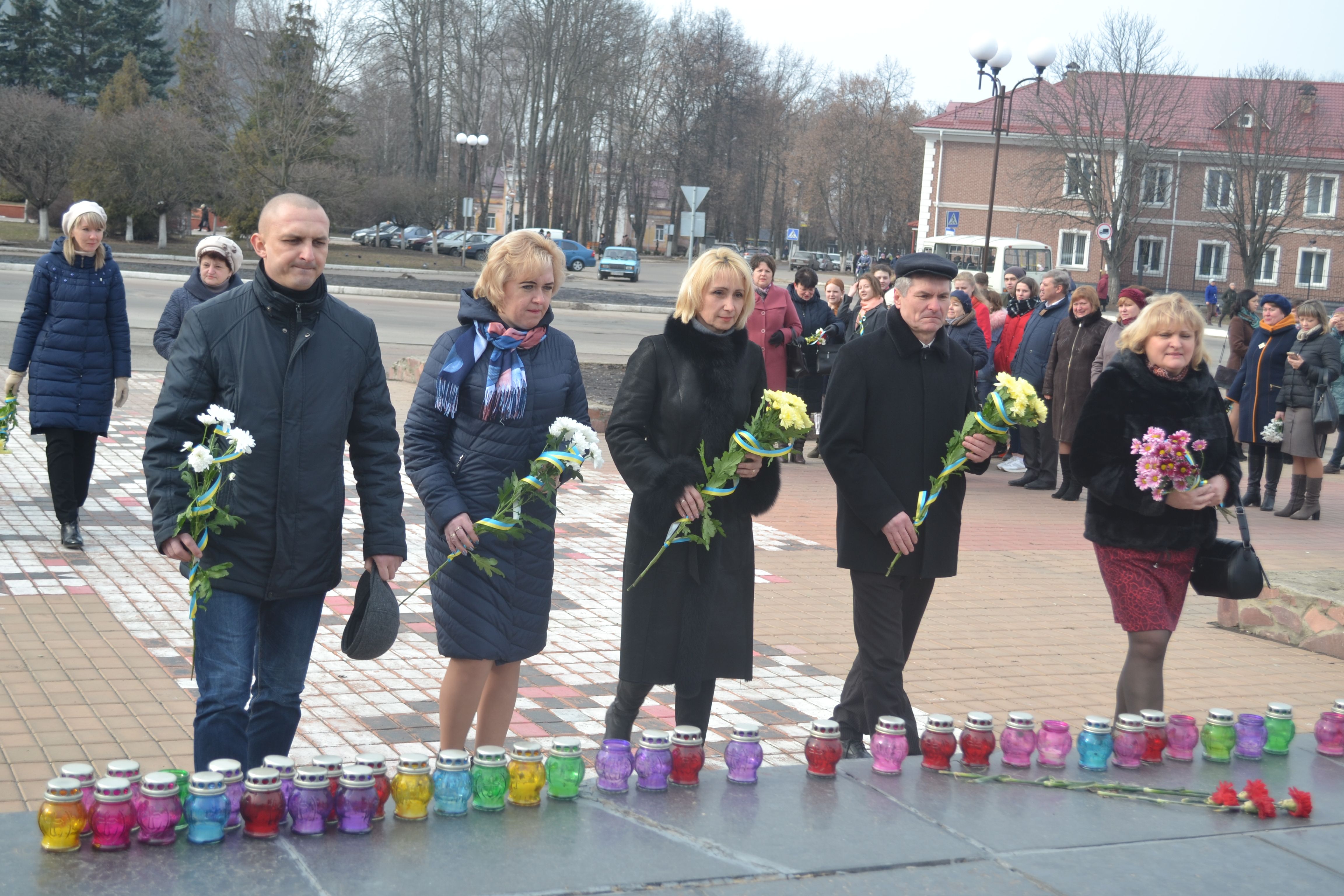 На площі Героїв Майдану керівники району та громадськість вшанували пам'ять земляків та всіх тих, хто загинув, захищаючи цілісність нашої країни.